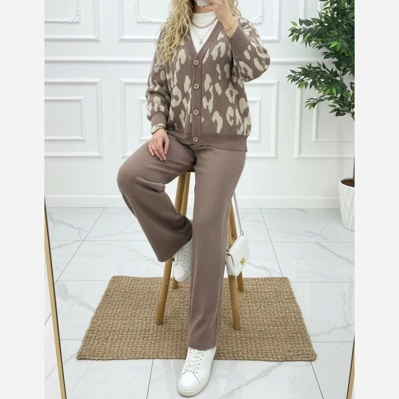 ست سه تکه پلنگی جنس بافت فری سایز 38تا 46ناموجود