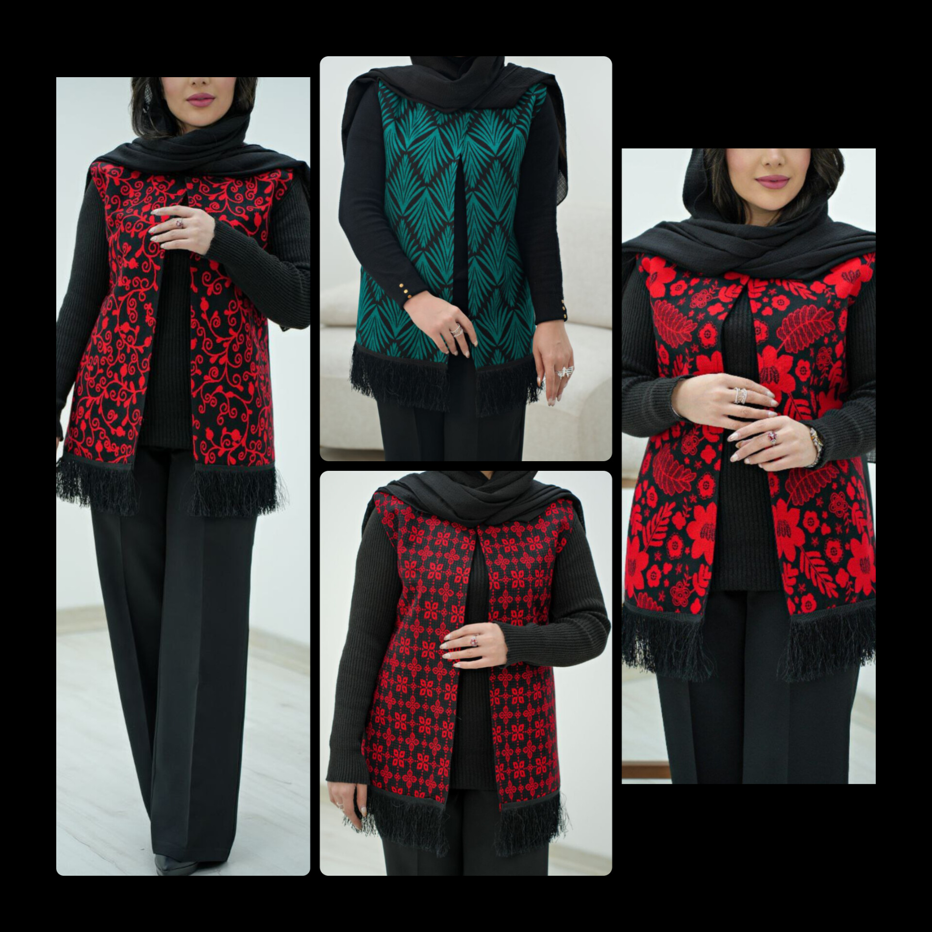 جلیقه ریش دار فرحزاد جنس تافته و پرشین فری سایز 38تا 46