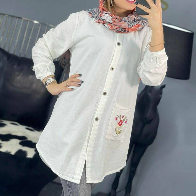 تونیک مانتویی فرشته جنس الیاف فری سایز36تا44 سفید رنگ
