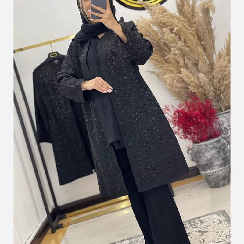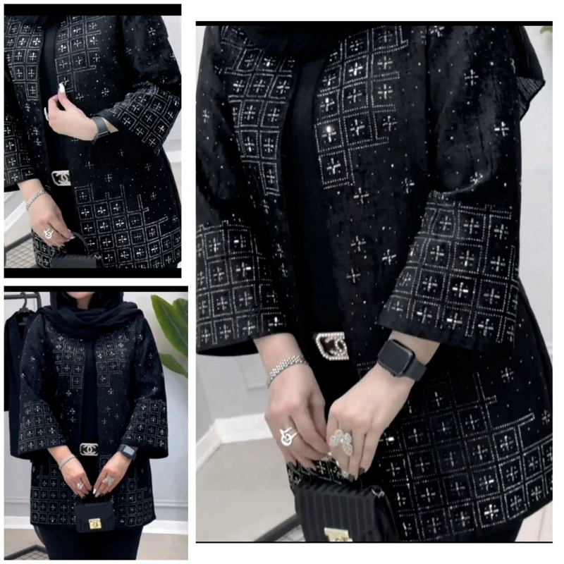 مانتو عبایی نگین جنس حریر ژاکارد فری سایز 38 تا 52
