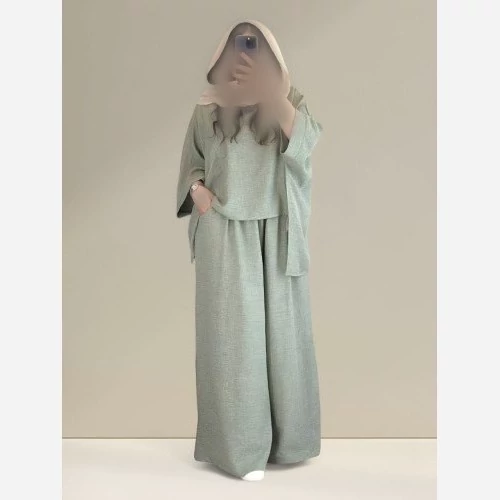ست تونیک و شلوار دمپا جنس کتان فری سایز 38تا 46