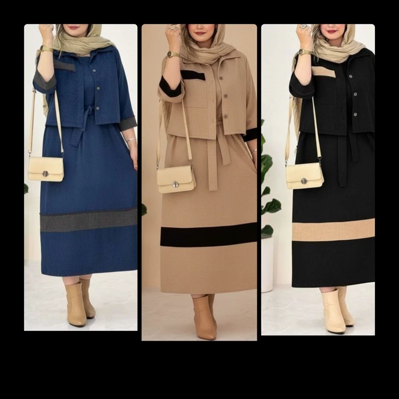 ست کت و سارافون آسو جنس لنین بدون آبرفت فری سایز38تا 46