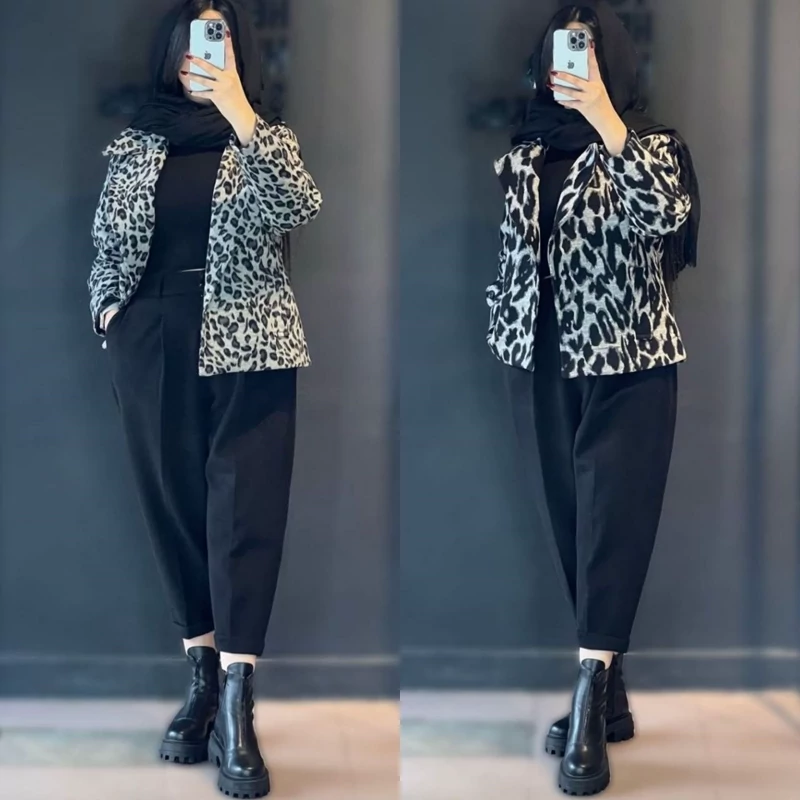 ست هودی و شلوار پلنگی جنس گلکسی فری سایز38تا 46
