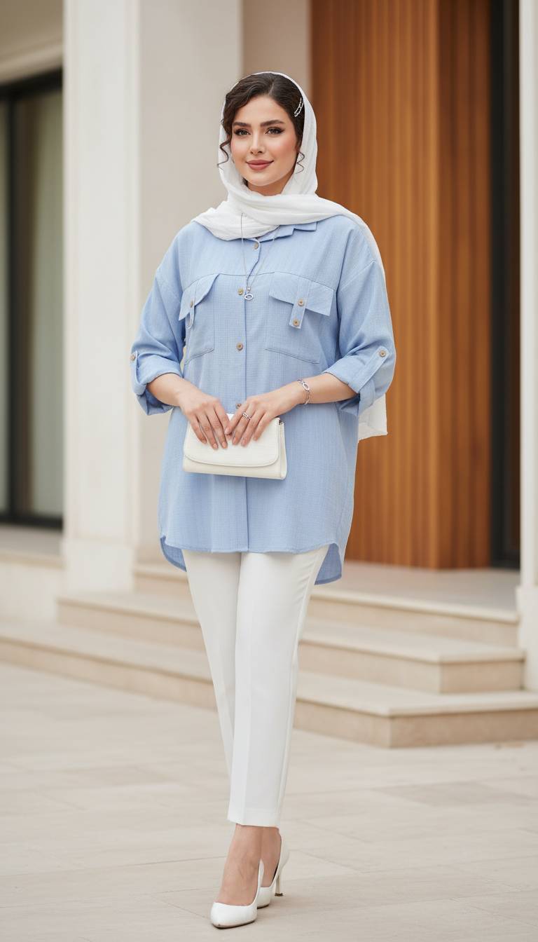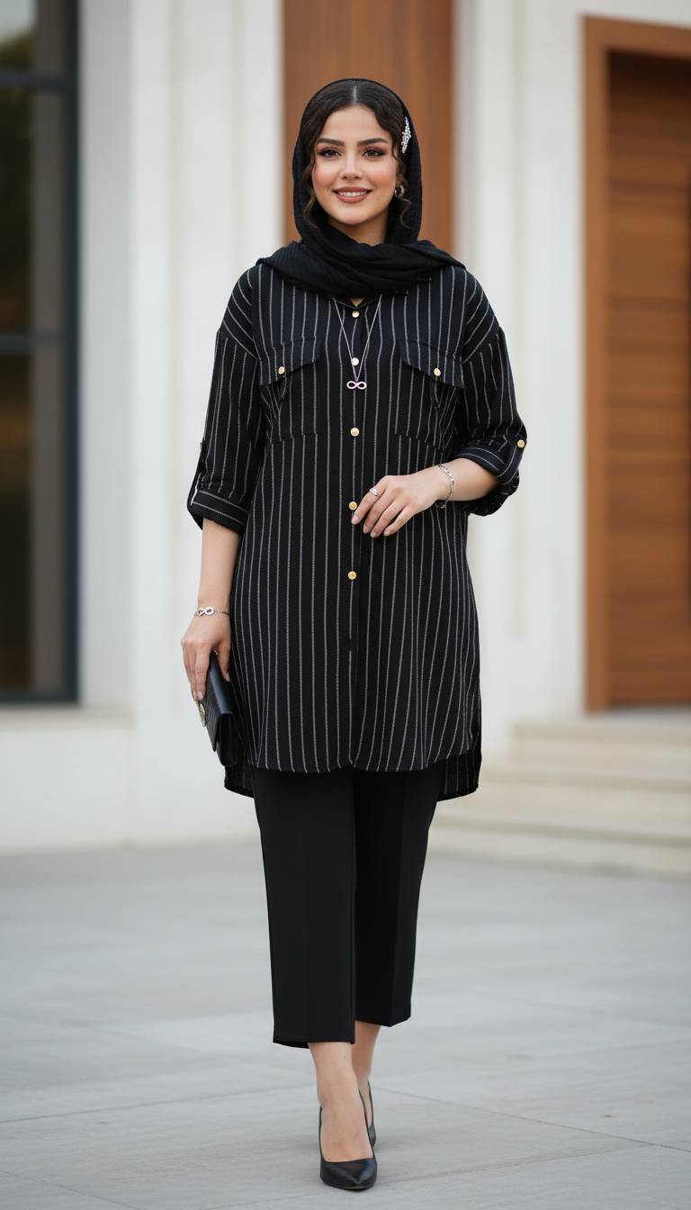 شومیز مانتویی عیدانه،جنسش خرابی نداره ،چروک نمیشه مدل جیبشم مدل صلیبیه که حسابی مده
