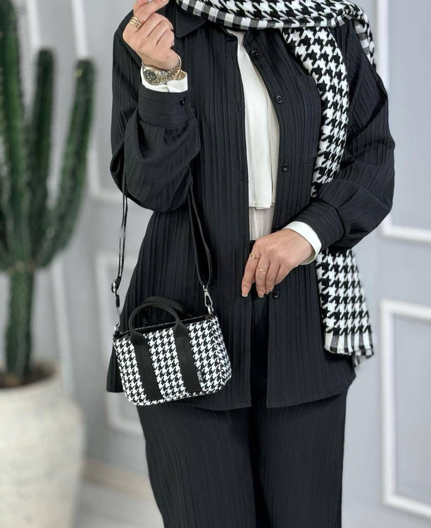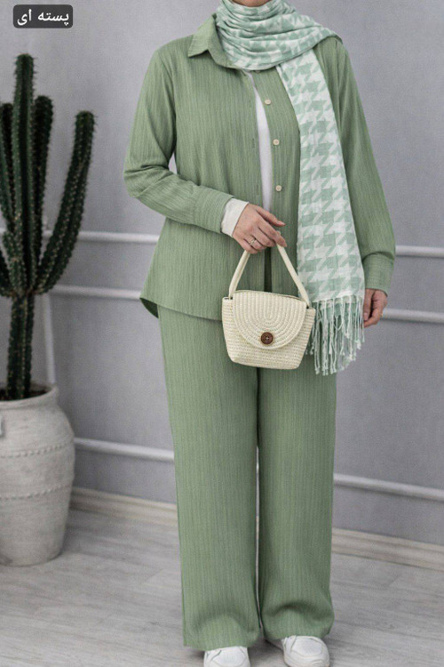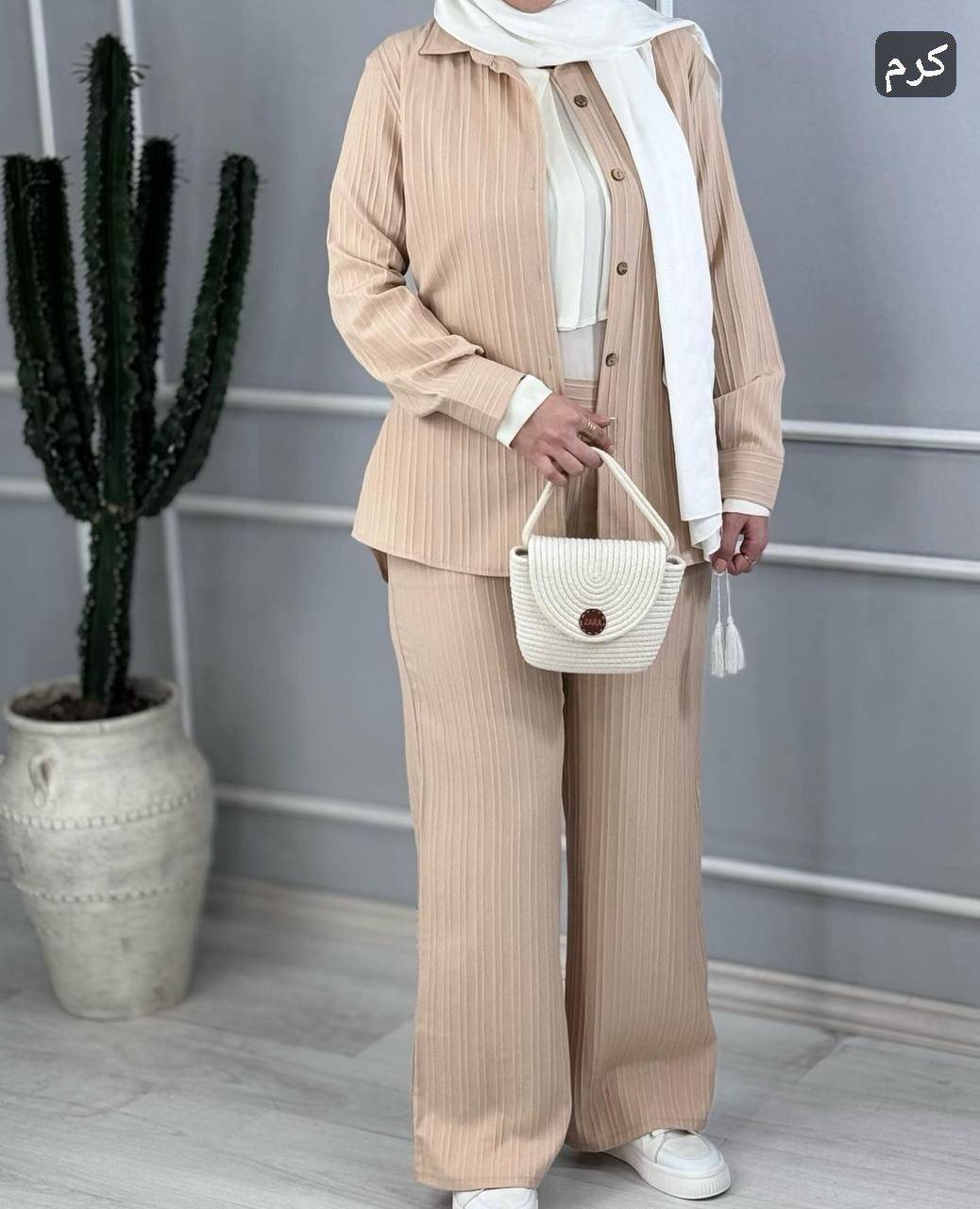قد ۷۸✅️ دور سینه ۱۱۴✅️ دو باسن ۱۱۲✅️قد آستین از یقه ۷۴✅️ دور بازو ۴۲✅️ قد شلوار ۱۰۰✅️ مانتو تک جیب کاربردی✅️ شلوار کمر کش✅️