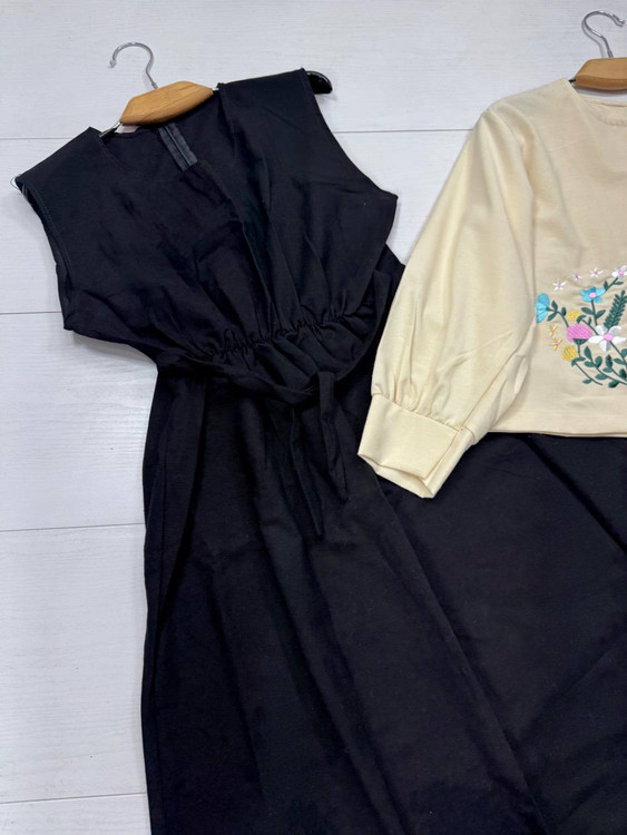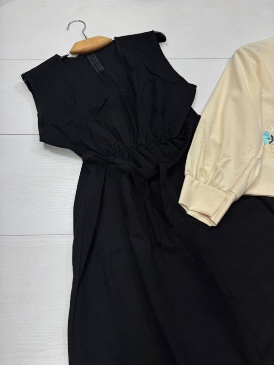 ✅️پشت سارافن زیپ و کمربند دارد