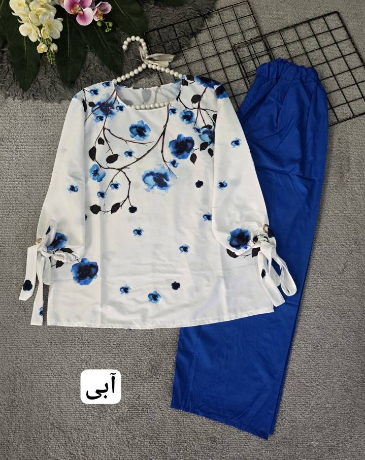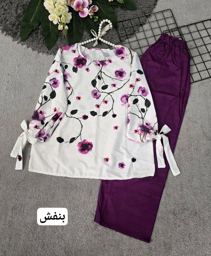 ست شومیز و شلوار شکوفه جنس بوگاتی