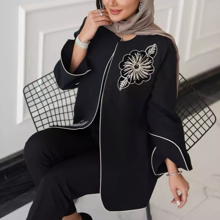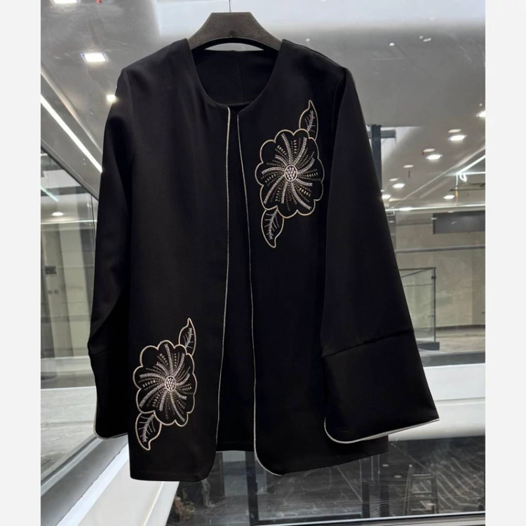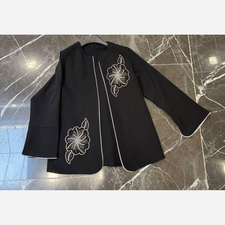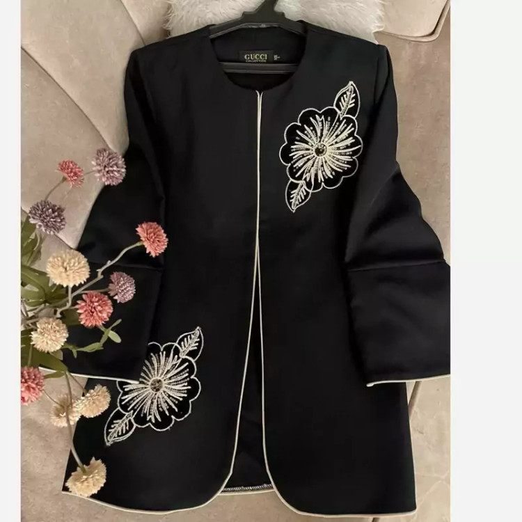 🆔 h#152 👚نام : کت مزونی نیکا ❤قد کت 72 سانت ❤قد آستین 60 سانت ❤دورسینه 105 🧵جنس : مازراتی اعلا با خرجکار گلدوزی شده 🖌 رنگ بندی : مشکی ⚜️ سایز ها : فری سایز38 تا 46 ✅داخل کت لایی پرشین کار شده و ایستایی کت عالیه 😘 کیفیت کار مزونی و عالیه لطفا با کار فیک مقایسه نشه❌😉