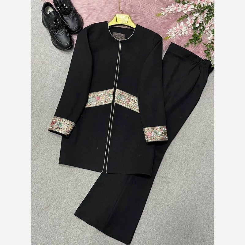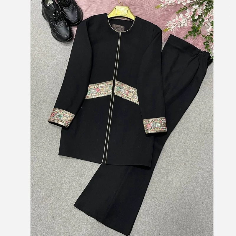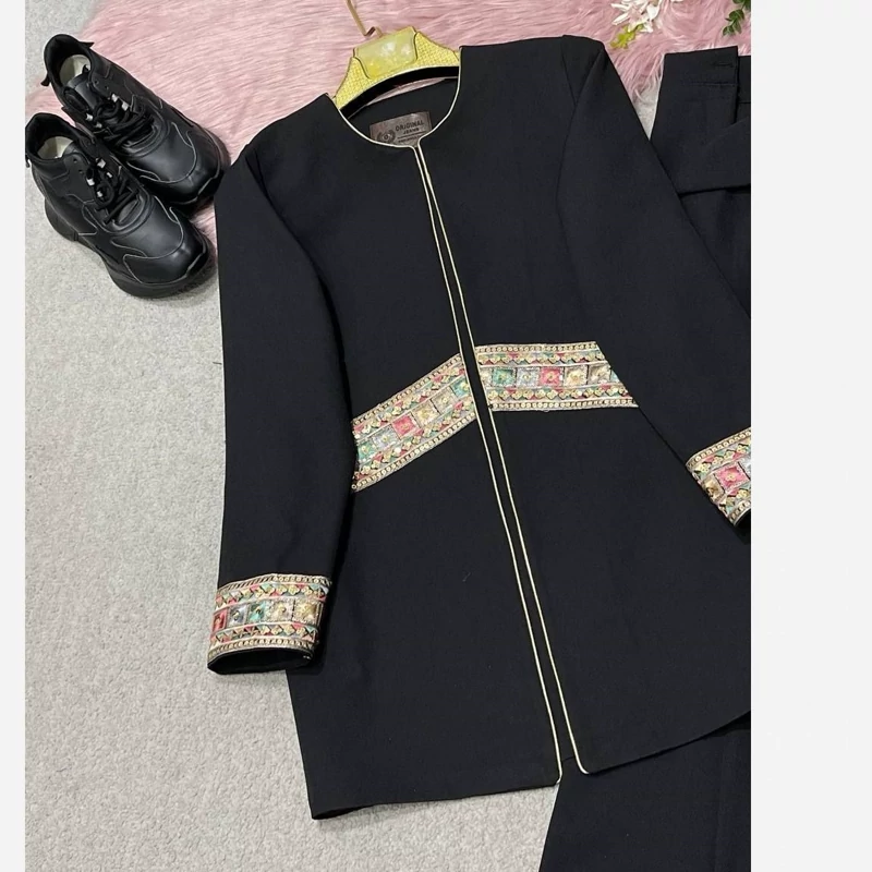 B #79005 🛍نام : کت شلوارگلبهار🍂 جنس : کرپ مازراتی با خرجکار هندی👌🍂 🌈رنگ بندی : مشکی✔️ ⚜️سایز ها : 38تا43, 44تا48, 50تا52✔️ 🛍قدکت حدودا80 قدشلوار103 دمپاشلوار60 قداستین61✔️ 💫 دورسینه سایز1=100 دوربازو:38 دورران:60 ✔️ 💫دورسینه سایز2=108 دوربازو:40 دورران:63✔️ 💫دورسینه سایز3=118 دوربازو:46 دورران :66✔️ جلوی کت تماما لایی خورده✔️✔️ 🌹کار کاملا رنگش مشکی هست و اصلا بور نیست. خرجکار بسیار عالی و بدون ریزش