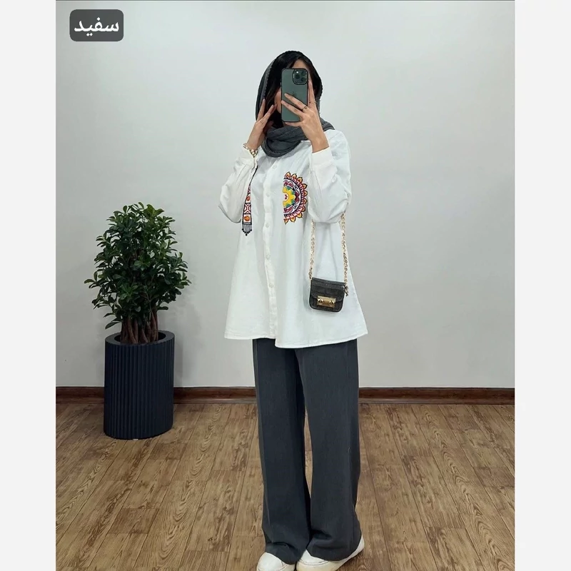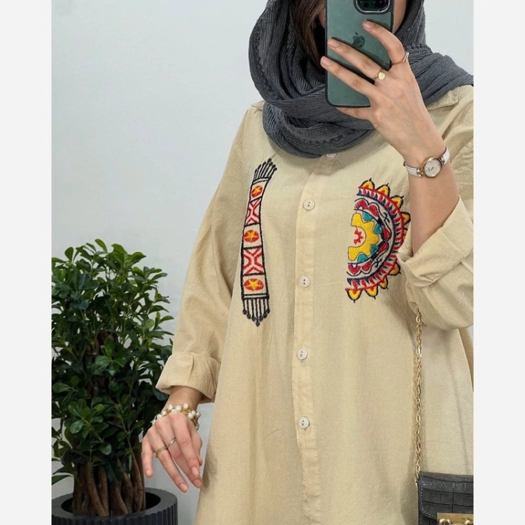 مانتو خورشید جنس لنین الیاف فری سایز 38تا 46