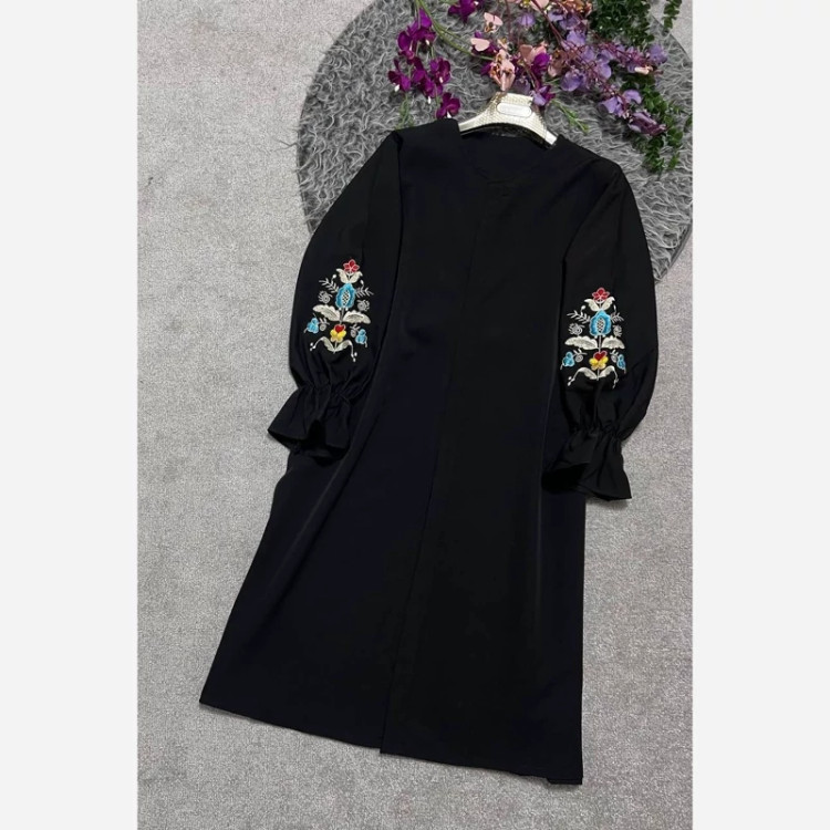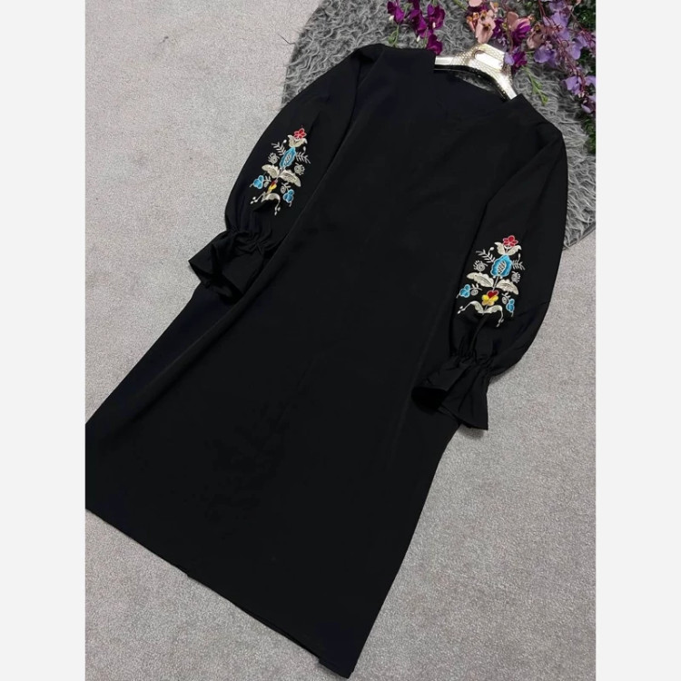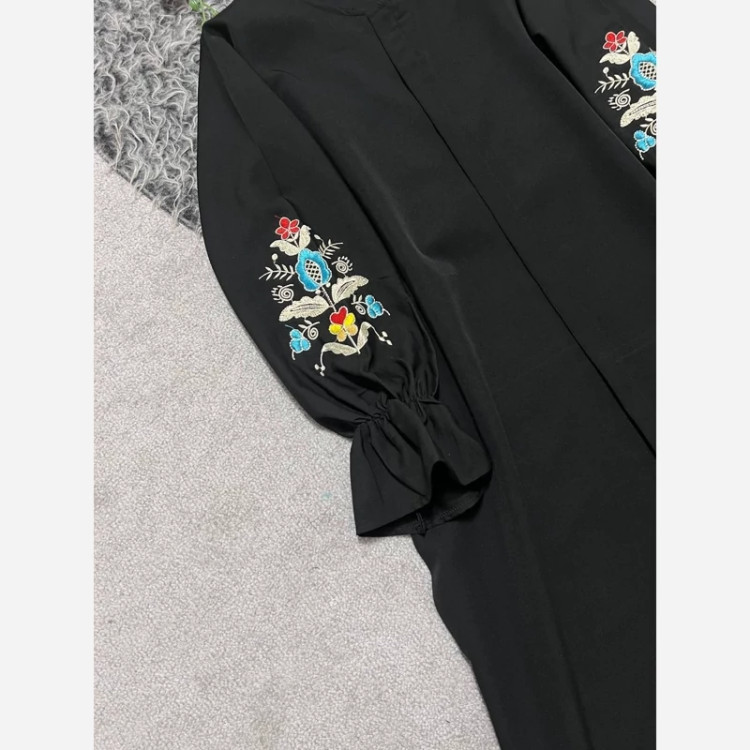 🆔 R#36948 👚نام : مانتو گلدوزی بسیار زیبای کایلین 😍😍 👗✅قدکار حدودا 110 دورسینه سایز1: حدودا 104 تا105 (38 تا44) دورسینه سایز2:حدودا 112 (46 تا48) دورسینه سایز3:حدودا 118 تا120 (50تا52) ✅قد آستین:60 ✅دوراستین کش خورده ✅سجاف لایی کاری شده ✅جلوکار دکمه مخفی خورده ✅دم آستین گلدوزی شده است. ✅دوخت مزونی و تنخور عالی 🧵جنس : مازراتی نخ توییست بدون آبرفت و پرزدهی گِرم بالا 🖌 رنگ بندی : مشکی - نخودی ⚜️ سایز ها : 1 - 2 - 3