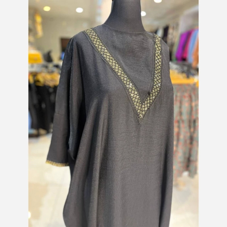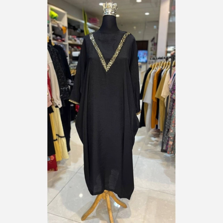 #️⃣sd : #4504 🖋نام : مانتو عبایی هانا 👚جنس : کرسپو اعلا 🌈رنگ بندی : مشکی 📏سایزها : فری38تا54 📝توضیحات : کیفیت فوق العاده عااااالی✅ تنخور شیک و مجلسی ❤️ پارچه بسیار خنک و دوخت بسیار تمیز خرج کار نوار پولکی کار شده پشت یقه هم دکمه خورده قد 125 آستین از یقه 58 دورسینه یا عرض مانتو 180 سانت