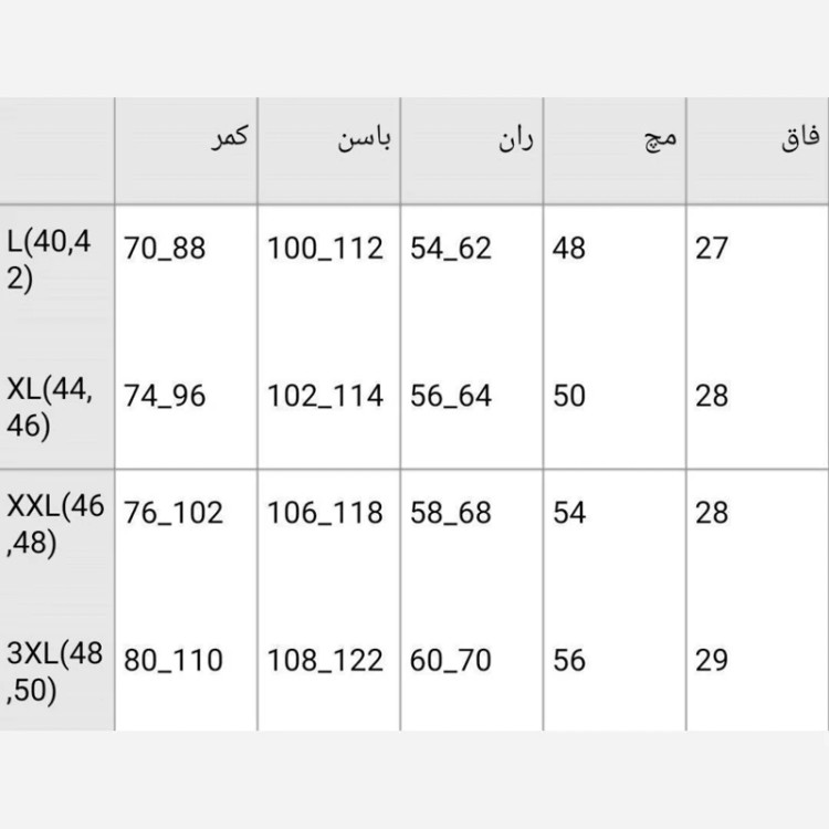 L(38,40,42) XL(44,46) XXL(46,48) 3XL(48,50)