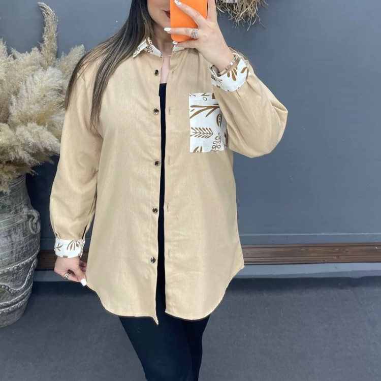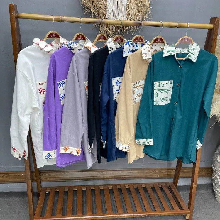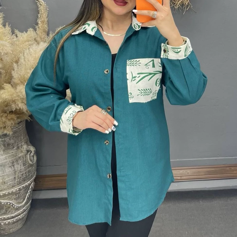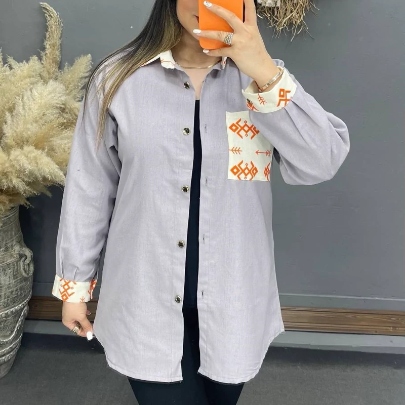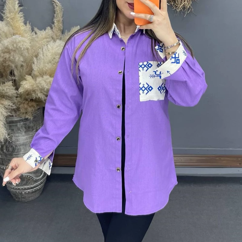 ش45710 💝نام : شومیز مانتویی احلام ❤جنس : لنین نچرال 🌈رنگ بندی : بنفش, خاکی, سبز, سفید, سورمه ای, طوسی, مشکی 🎁فری سایز 36 تا 46 قد 82 قد استین 72 دورسینه 116