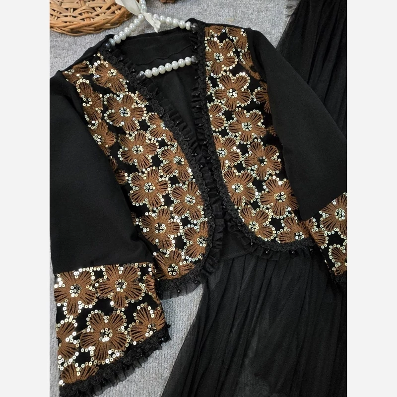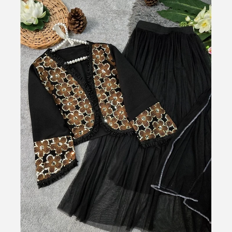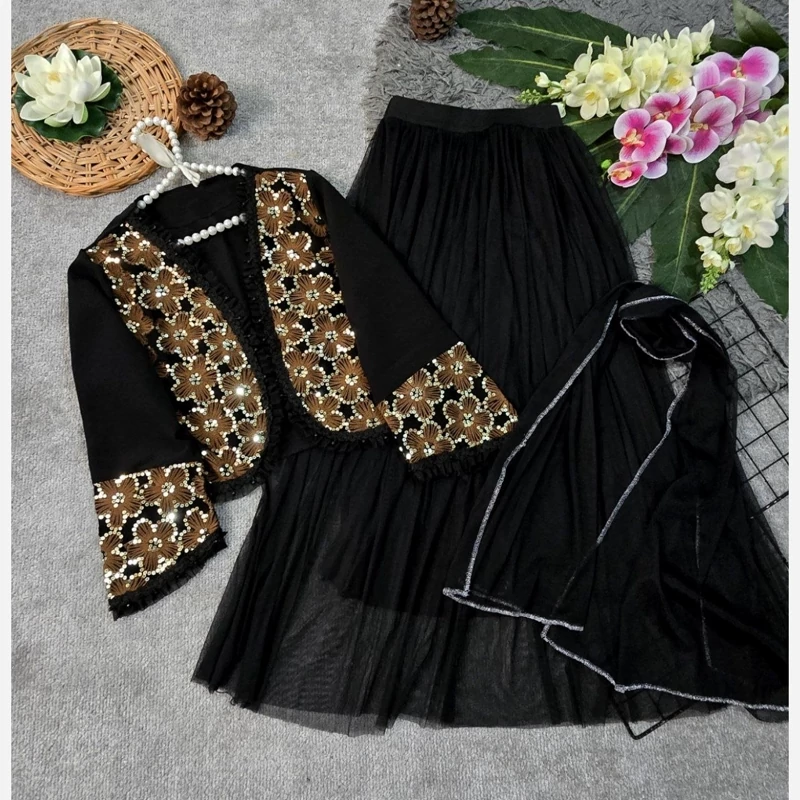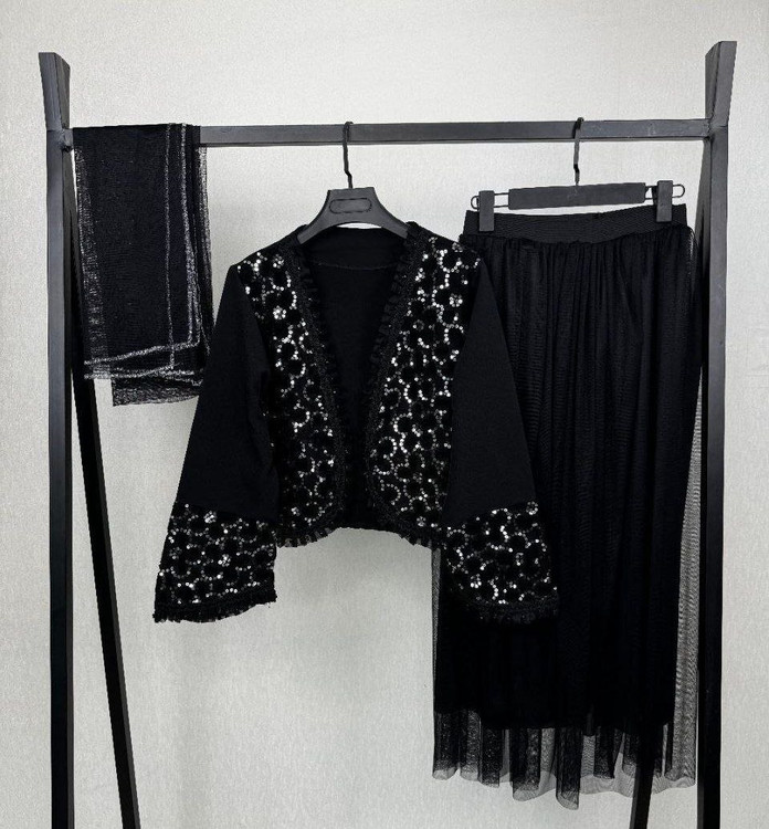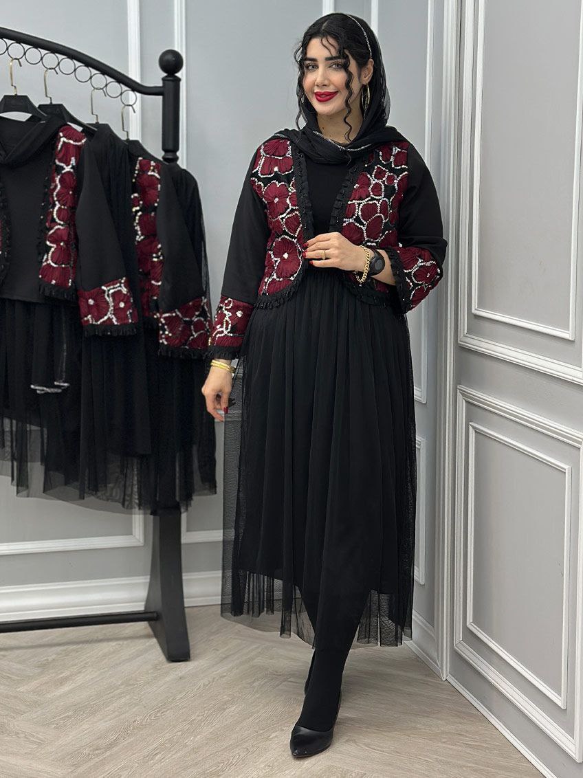 ❤️ 🅰️🅰️🅰️ 🅰️🅰️🅰️🅰️🅰️❤️ 🔹🔹🔹سه تیکه کت و دامن و شال🔹🔹🔹 e: #92916 💞نام : مدل روناک 💞جنس : مازراتی خرجکار هندی و تور 💞رنگ بندی : زرشکی،سورمه ای مشکی، شکلاتی 💞سایز ها : فری38_46 🌹قد کت حدود 50 سانت 🌹دور سینه حدود 100 سانت 🌹قد آستین حدود 55 سانت 🌹قد دامن حدود 100 سانت 🌹قد شال حدود 155 سانت