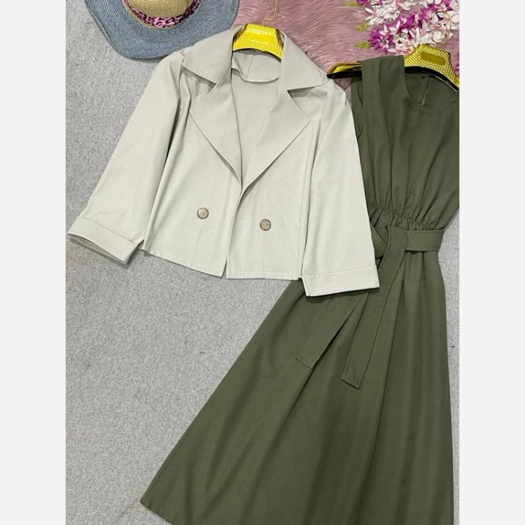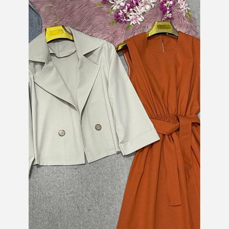 ✅️ پشت یقه زیره دکمه خورده جهت تنپوش راحت لباس و دارای کمربند میباشد جهت تنظیم سایز