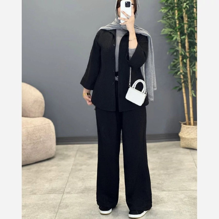 #کالکشن_جدید شیک وخاص⚘️🌺💕 i: #88322 نام : ست روشنک جنس : مراکشی خارجی رنگ بندی : نسکافه ای, شیری, مشکی سایز ها : فری38تا46 حدودا👇 دورسینه 126 بلندی لباس 70 بلندی آستین 58 بلندی شلوار 98