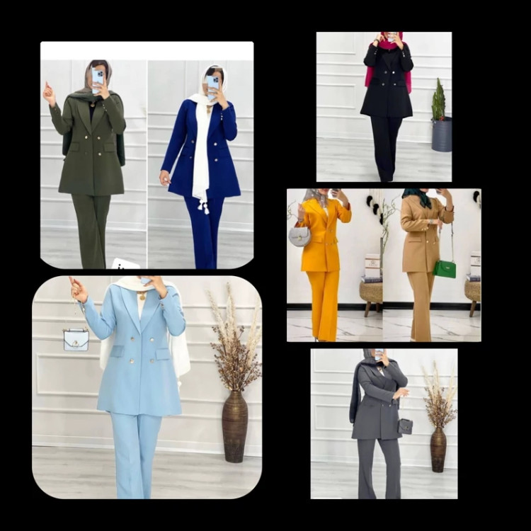 m#67484 نام : کت و شلوار نگین جنس : کرپ مازراتی 🌈رنگ بندی : ابی آسمانی, ابی کاربنی, خردلی, سبز, سبزکله غازی, شکلاتی, طوسی, کرمی, مشکی, نسکافه ای سایز ها : 1(36-42), 2(44-48) ❣️قد مانتو80 ❣️قد شلوار حدودا 105سانت 🌹جیبها نما 😍پشت کمر شلوار کش کار شده ❤️🔥 جلوی کت لایه کاری شده دوخت مزونی ✅دور سینه سایز یک 100. دور باسن سایز یک 105سانت ✅دور باسن سایز دو 108 دور باسن 110سانت 🌈مطابق رنگهای غیرژورنال انتخاب گردد
