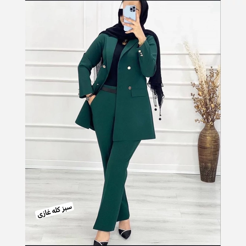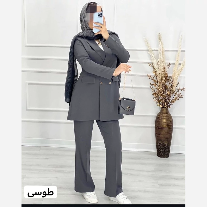 m#67484 نام : کت و شلوار نگین جنس : کرپ مازراتی 🌈رنگ بندی : ابی آسمانی, ابی کاربنی, خردلی, سبز, سبزکله غازی, شکلاتی, طوسی, کرمی, مشکی, نسکافه ای سایز ها : 1(36-42), 2(44-48) ❣️قد مانتو80 ❣️قد شلوار حدودا 105سانت 🌹جیبها نما 😍پشت کمر شلوار کش کار شده ❤️🔥 جلوی کت لایه کاری شده دوخت مزونی ✅دور سینه سایز یک 100. دور باسن سایز یک 105سانت ✅دور باسن سایز دو 108 دور باسن 110سانت 🌈مطابق رنگهای غیرژورنال انتخاب گردد
