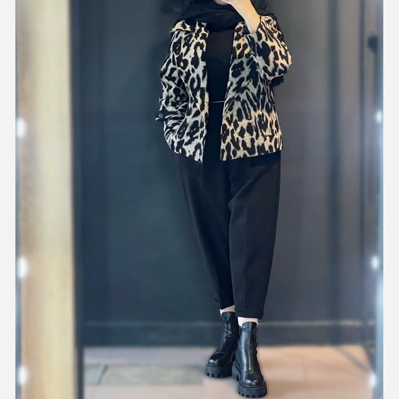 #پاییزه🍁🍁 🍁i: #96095 نام : ست کت و شلوار پلنگی مروه جنس : کتان کشی اعلا رنگ بندی : کددو, کدیک سایز ها : فری38تا46🍁 دورسینه تقریبا 112 بلندی کت 70 بلندی شلوار 101 دور دمپاشلوار تقریبا 34