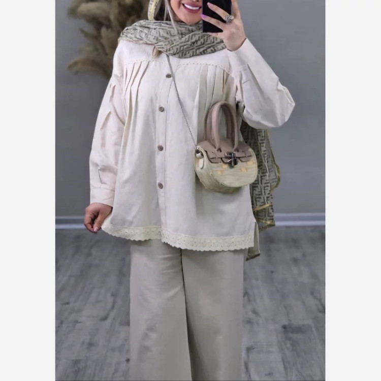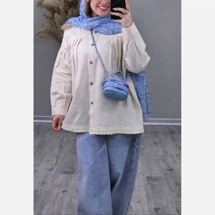 ش#87522 نام : مانتو بتیسا جنس : لیننن نچرال خنک✅️ خرجکار گیپور دانتل✅️ رنگ بندی : ژورنال سایز ها : فری 36تا50 قد 72✅️ دورسینه 126✅️قد آستین از یقه 70✅️ دوربازو 44✅️ طرح زمینه ممکنه متفاوت باشه رندوم ارسال میشود✅️