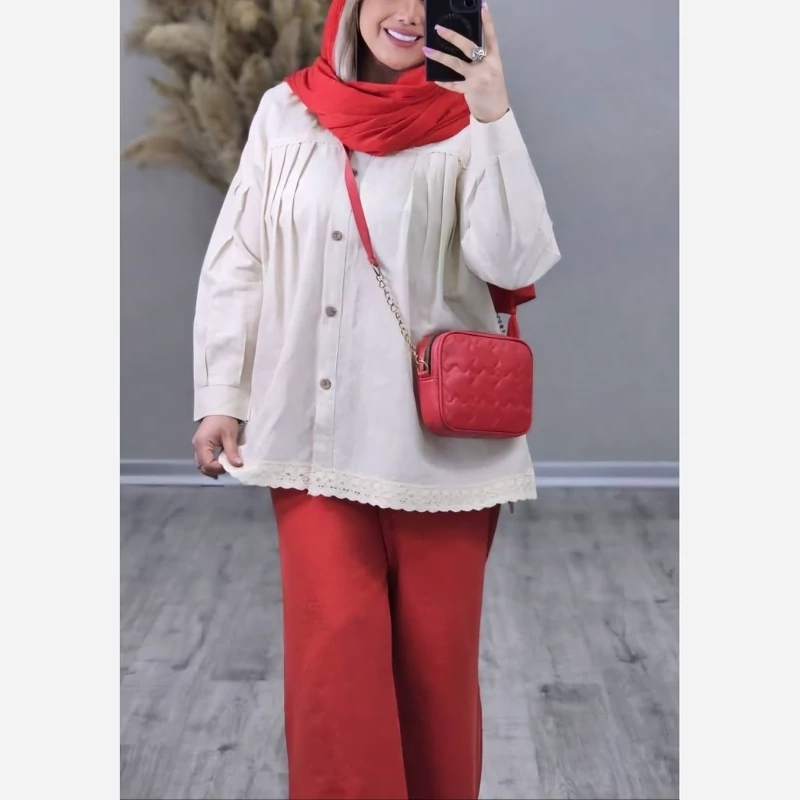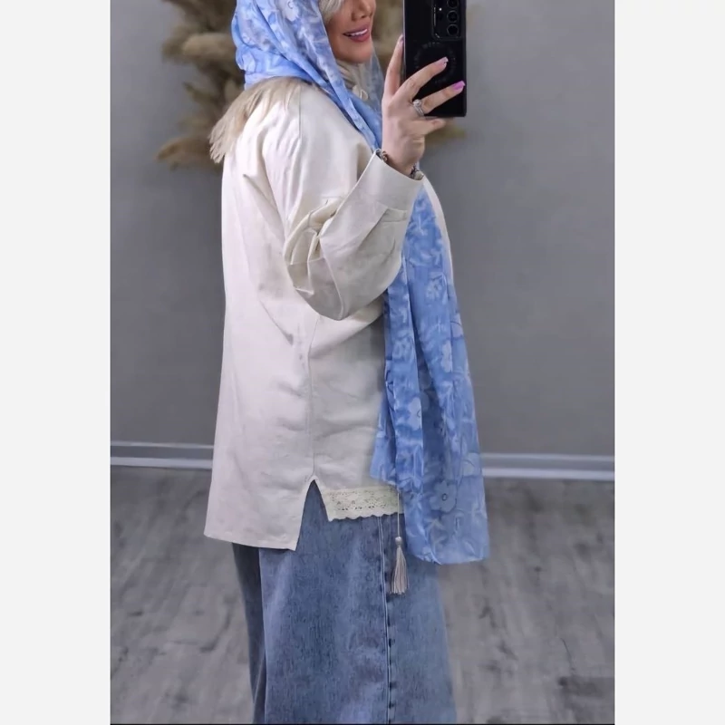 ش#87522 نام : مانتو بتیسا جنس : لیننن نچرال خنک✅️ خرجکار گیپور دانتل✅️ رنگ بندی : ژورنال سایز ها : فری 36تا50 قد 72✅️ دورسینه 126✅️قد آستین از یقه 70✅️ دوربازو 44✅️ طرح زمینه ممکنه متفاوت باشه رندوم ارسال میشود✅️