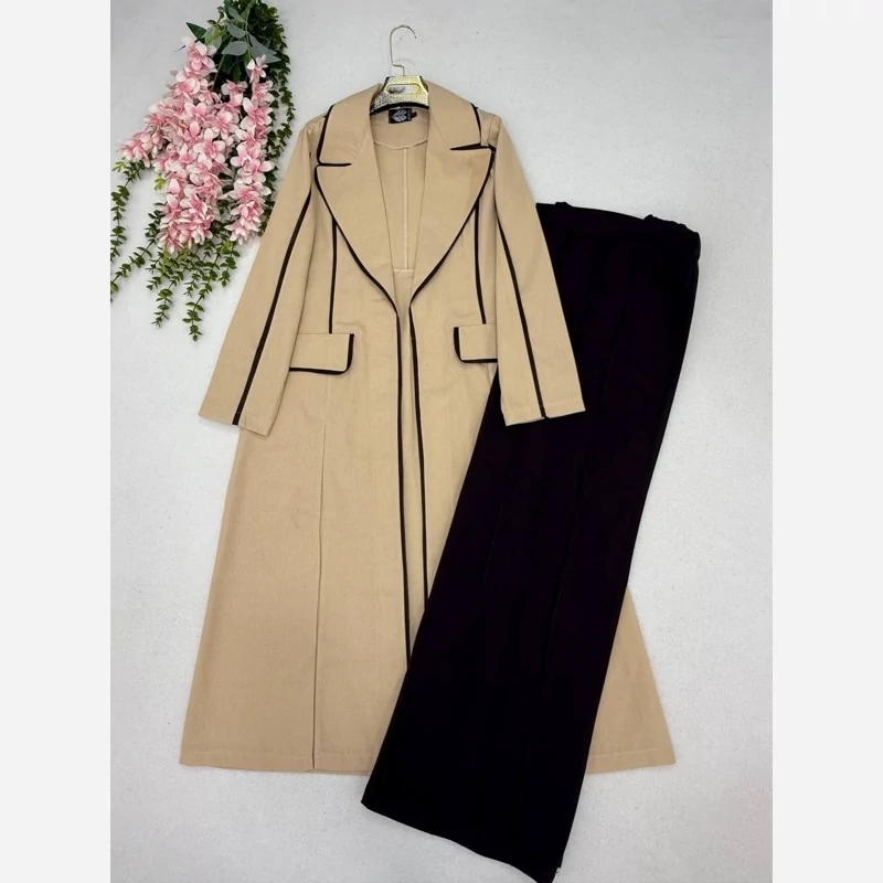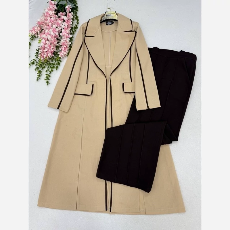#90650 🌷نام : مانتو شلوار مدینا 🌷جنس : مانتو لینن و شلوار مازراتی 🌷رنگ بندی : تک رنگ مانتو کرم و شلوار قهوه ای تیره