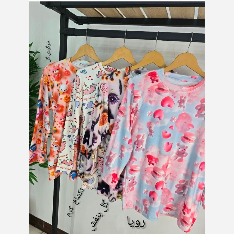 🍁st: #95197 🍁 نام : ست مخمل سه بعدی 🍁 جنس : مخمل سه بعدی 🍁 رنگ بندی : آبی روشن تدی, آبی گل پیچ, آفتابگردان ابی, بامبو طوسی, ببر, بنفش پلنگی, پاریس صورتی, پروانه, پری آبی, تدی بنفش, تدی پاپیون طوسی, تدی سورمه, تکشاخ ابی, تکشاخ کرم, توپی, حروف بنفش, خرس مرجانی, خرگوش, خرگوش گل, دلبر طوسی, دلفین, دو خرس, ربیت صورتی, ربیت مشکی, ربیت نسکافه, رنگین کمان طوسی, رویا, زبرا, سبز مزرعه, سر ابی, طوسی بافتی, طوسی پاپی, فوک, قلب پلنگی, کرم پاپی, کهربایی, گربه ابی, گربه آبی, گربه کرم, گل بنفش, گل نیلوفر, گل و کاموا صورتی, لاو, مزرعه صورتی, میکی, میکی پلنگی, مینی بافت سایز ها : فری قد بلوز حدودا 65 دور سینه حدود 90 قد استین 50 دور ران حدود 50 قد شلوار 95 ✅ کشسانی داره تو خونه هم شیک باش،هم زنونه هم دخترونه❤️🔥❤️🔥❤️🔥 چند تا طرح ش رو بردار و کلی باهاشون خوشگل و گوگولی تو خونه بگرد. انقدر راحته که خدا میدونه🤩🤩🤩🤩🤩🤩🌹🌹🌹🌹🌹