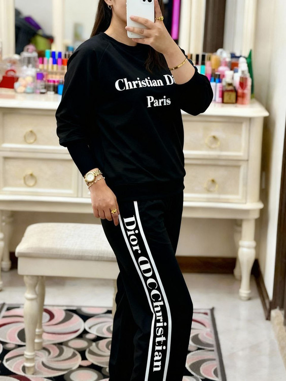 💞بلوز آستین بلند و شلوار⭕️ قواره دار⭕️کریستین دیور 💞جنس : سوپر اسپان گرم بالا 💞رنگ بندی : مشکی 💞سایز ها : فری38_48 🌹قد بلوز حدود 75 سانت 🌹دور سینه حدود 128 سانت 🌹قد آستین از سرشانه حدود 57 سانت 🌹قد شلوار حدود 100 سانت 🌹دور ران حدود 64 سانت 🌹دمپا حدود 30 سانت ⭕️فوووووول کش میباشد ⭕️قواره بزرگ ، خوش دوخت ، باکیفیت مطابق غیرژورنال، آستین ساده هست، کش بافت نیست.