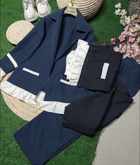 #کالکشن_بهاره1404 🍀⚘️💕 بپوشید و لذت ببرید 🥰 85013 نام : ست پرفروش درناز جنس : کتان کشی اصل/پرشیادونخ اصل رنگ بندی : سرمه ای سایز ها : فری38تا46 قدشلوارحدودا95 دورسینه108حدوداقدکت72حدودا کت سرجیب 2عدد دارد✔طبق ژورنال شلواررودوزی سفید دارد✔طبق ژورنال دوردمپای شلوار47✔
