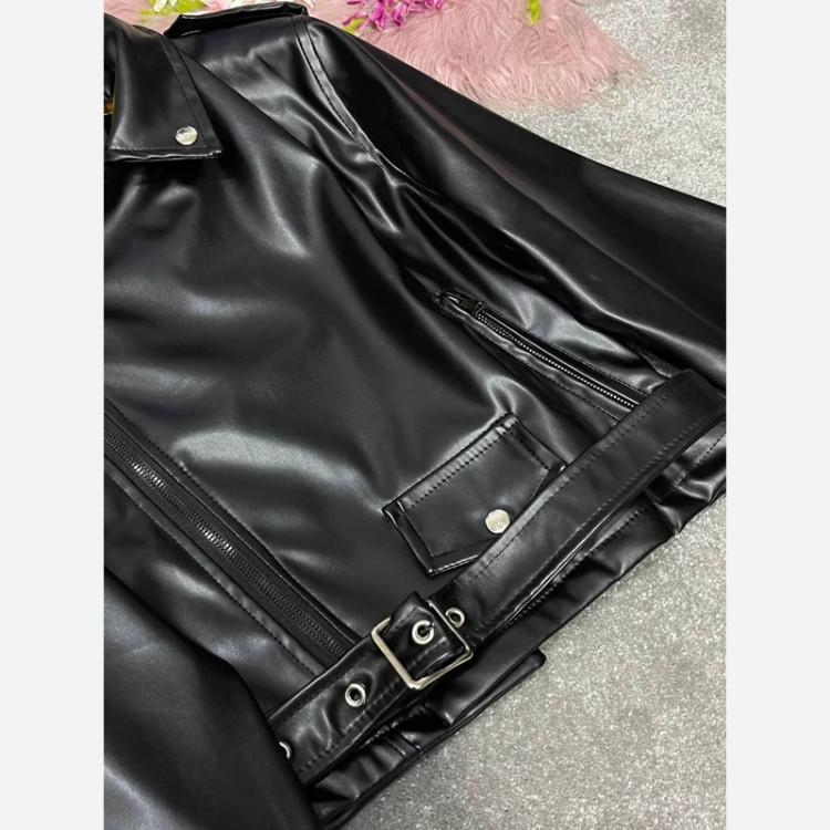 b #97357 🛍نام : کت چرم🍂 🪡جنس : چرم 👌🍂 🌈رنگ بندی : مشکی✔️ ⚜️سایز ها : فری38تا46✔️ ✅️قدکارحدود50 قدآستین 55 دوربازو40 دورسینه 110