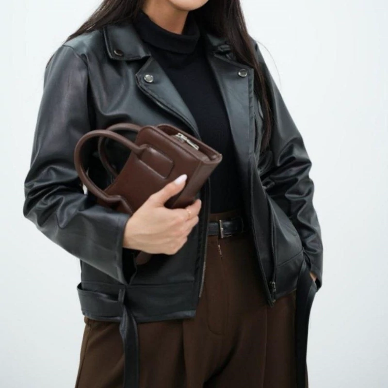 b #97357 🛍نام : کت چرم🍂 🪡جنس : چرم 👌🍂 🌈رنگ بندی : مشکی✔️ ⚜️سایز ها : فری38تا46✔️ ✅️قدکارحدود50 قدآستین 55 دوربازو40 دورسینه 110