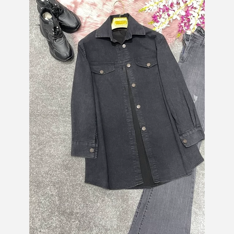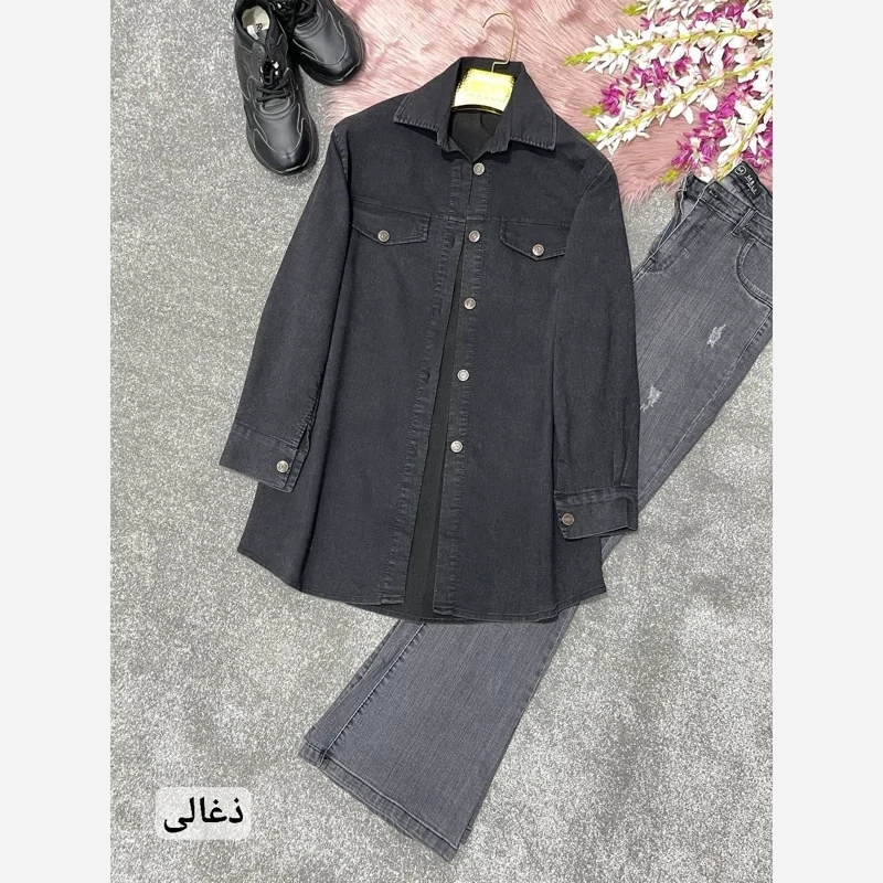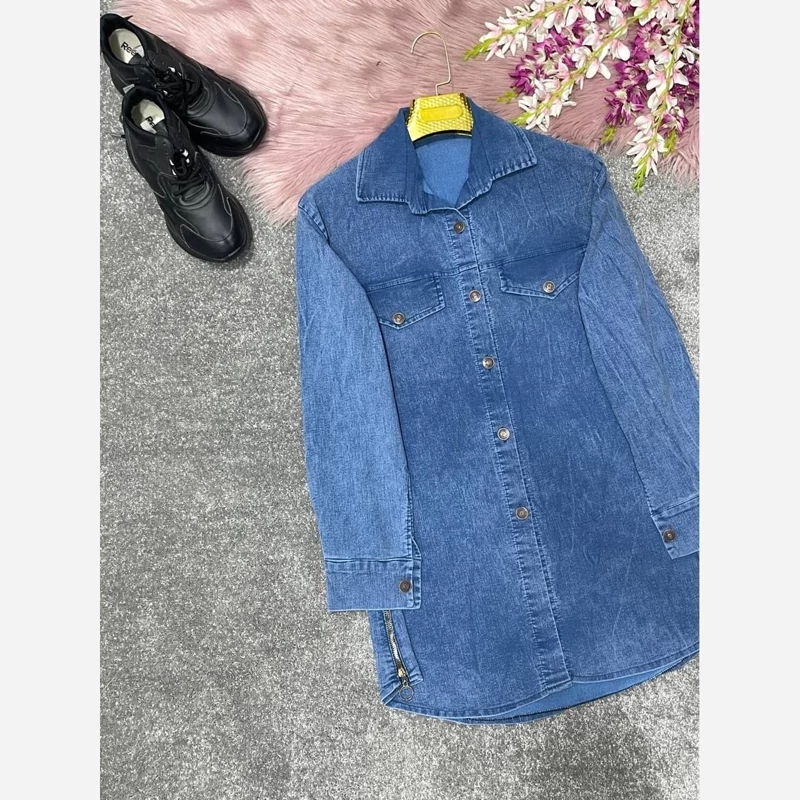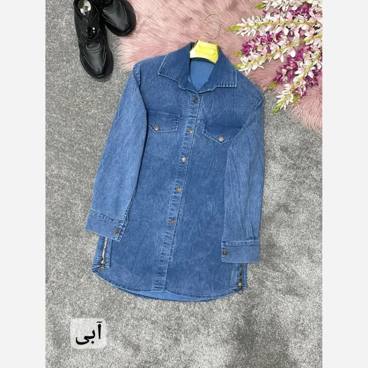 مانتو بغل زیپ جنس جین کاغذی گرم بالا فری سایز 38تا 48