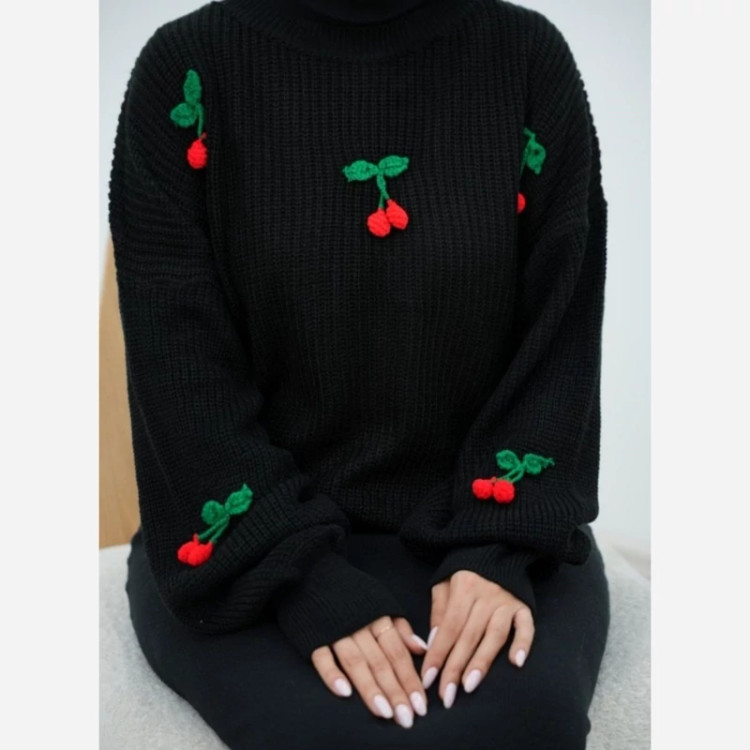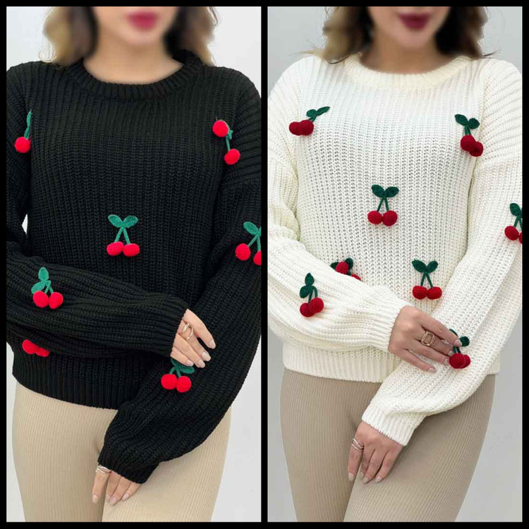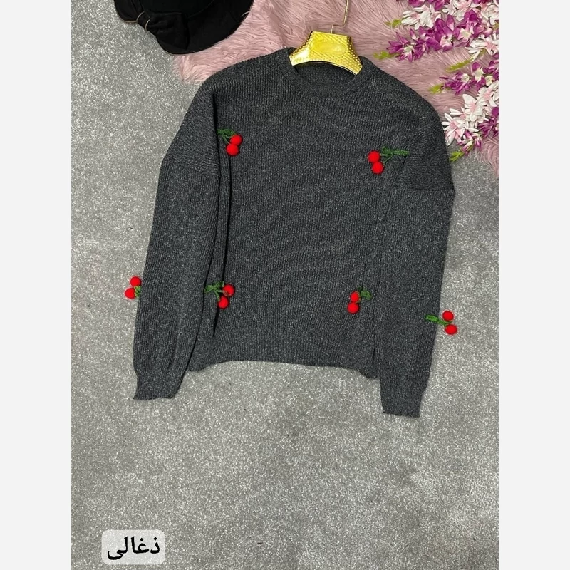 96493n🛍نام : بافت گیلاس🍒 🪡جنس : نخ بافت اکرولیک 👌🍂 🌈رنگ بندی : مشکی, ذغالی, سفید, قرمز✔️ ⚜️سایز ها : فری38تا46✔️ ✅️قدکارحدودا65