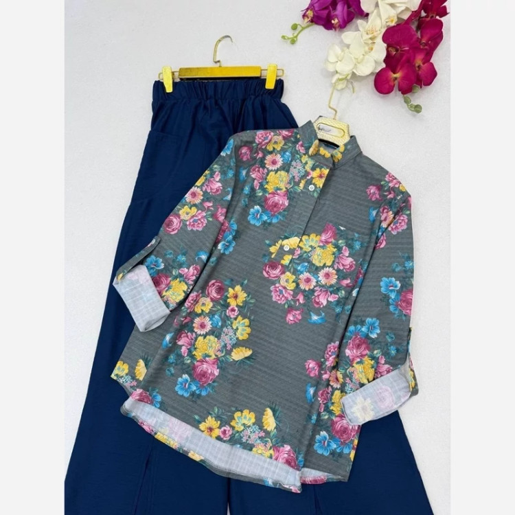ط#91374 🌷نام : شومیز تک رم 🌷جنس : صوفیا 🌷رنگ بندی : آبی,طوسی 🌷سایز ها : فری 38تا 46 🌷قد شومیز از یقه 69 🌷قد پشت شومیز 75 🌷دور سینه112 🌷قد آستین 58