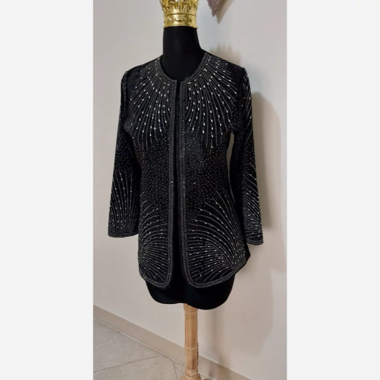 ✅جلو کار لایه پرشین خورده برای ایستایی بهتر قد حدودا 80⭕️⭕️ سه تا غزن جلو کار خورده 🧵جنس : مازراتی کنزو ترک👌 🖌 رنگ بندی : مشکی با نگین نقره ای،نگین مشکی - ⚜️ سایز ها : 1 - 2 - 3 -