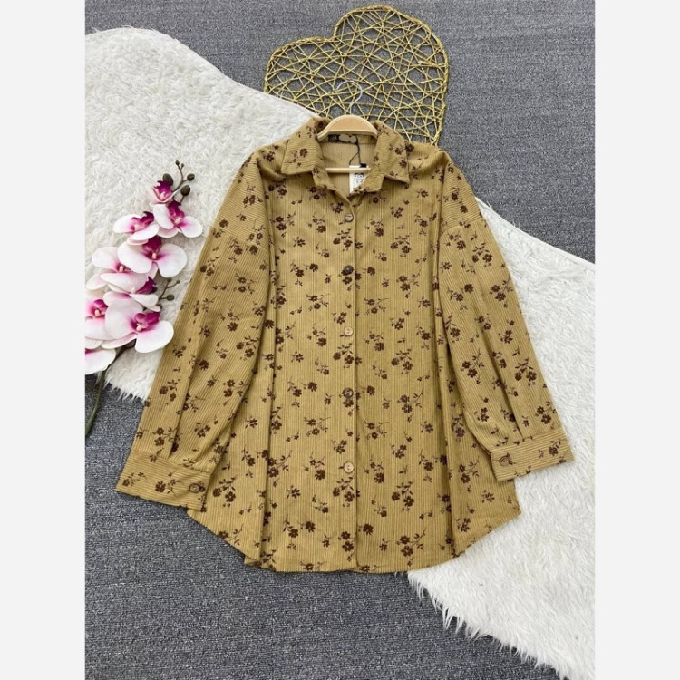 ش#96060 نام : مانتو پاییزه دلشاد جنس : مخمل کبریتی اعلا✅️ لمه راه راه رگه دار✅️ رنگ بندی : شکلاتی، نسکافه ای سایز ها : فری 38تا48 قد 70✅️ دورسینه 120✅️ دور باسن 118 ✅️قد آستین از یقه 66✅️ دور بازو 44✅️