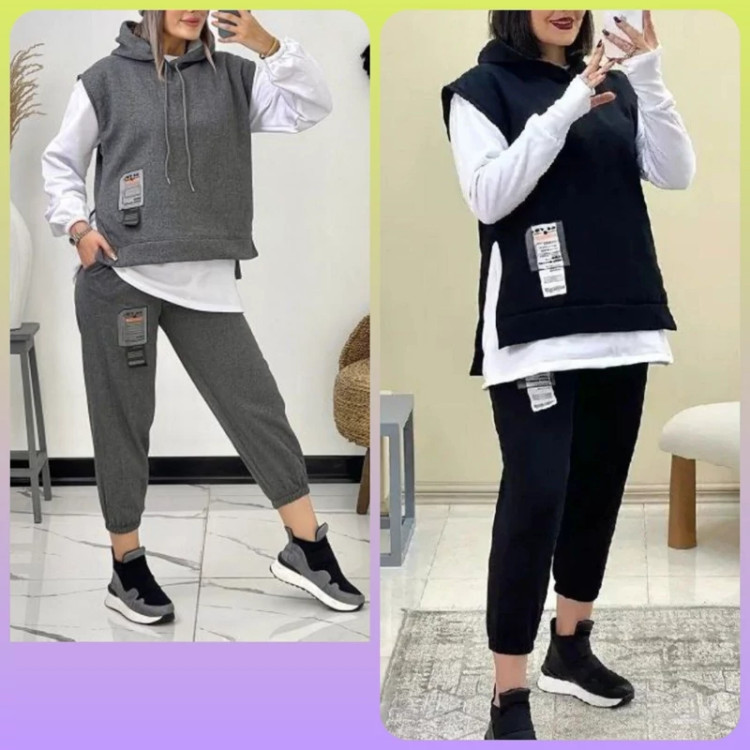گرمای بالا مناسب زمستان✌🍂 😊قیمت باهیچ جامقایسه نکنید✔ دوخت مزون دوز و تضمین شده✔ ✅نام : ست اسپرت 3تیکه سرین جنس :گلکسی زمستانه ضخیم رنگ بندی : مشکی , ذغالی, طوسی روشن ,طوسی متوسط سایز ها : 38تا48 فری 🪻عرض سینه110 🪻قد رویه پیش 60 🪻قد پست65 ❌کلاه رویه بند ندارد❌ 🪻قد شلوار95 🪻زیره قد72 🪻عرض106 🌸مطابق غیرژورنال،سگک روی لباس و شلوار مطابق غیرژورنال نارنجی رنگ هست🌸