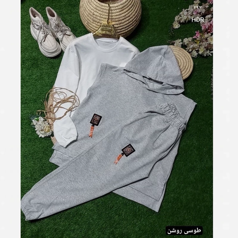 ست اسپرت سه تیکه سرین جنس گلکسی ضخیم فری سایز تا 48