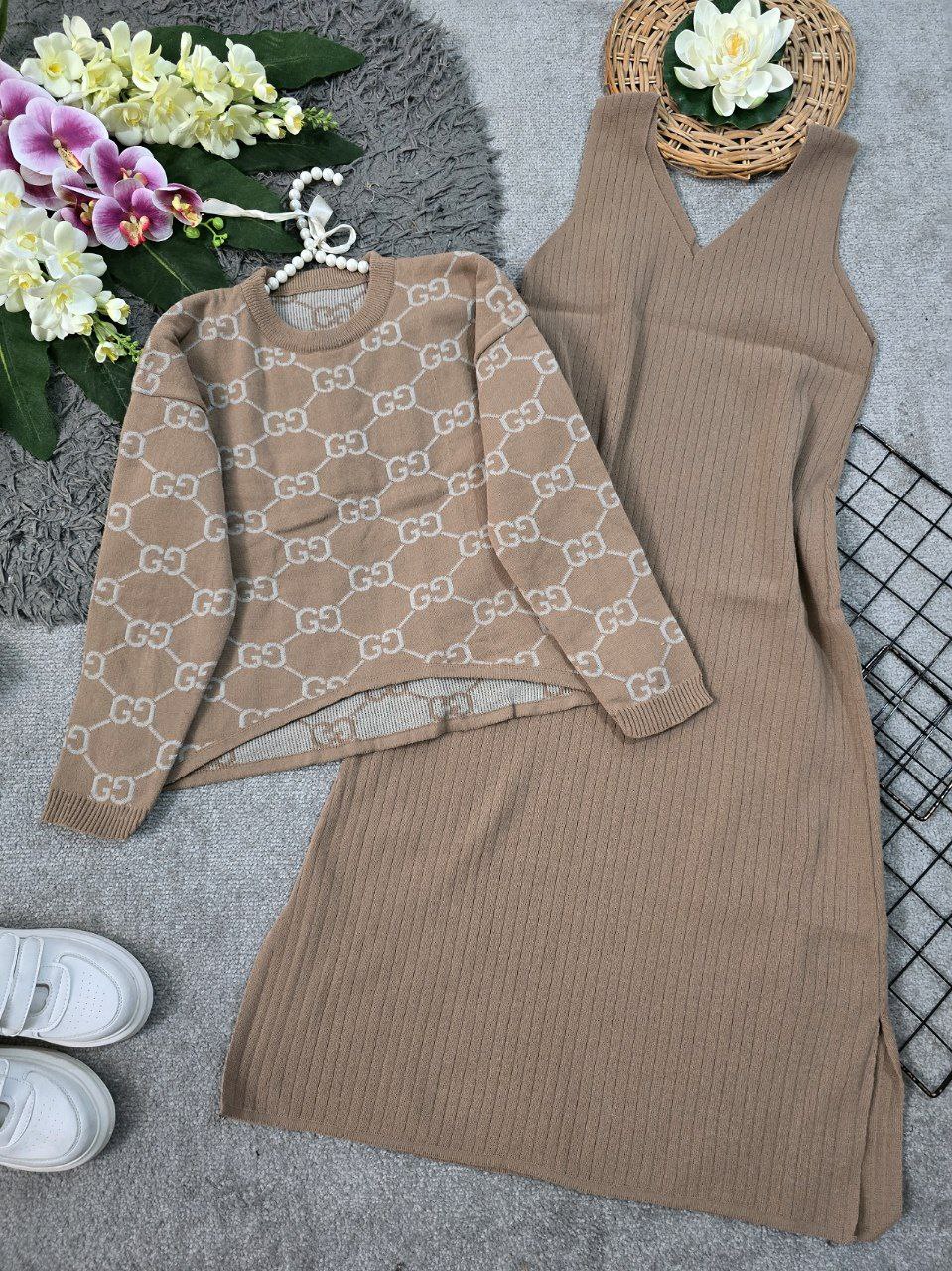 🍂نام : بلوز و سارافون گوچی 🍂جنس : بافت اکرلیک 🍂رنگ بندی : خاکی, زرشکی, زغالی و سبز 🍂سایز ها : فری36 تا 44 دو طرف بغل سارافون چاک دارد ✅ .🍂قد جلو بلوز 50 🍂قد پشت بلوز 57 🍂دور سینه بلوز 112 🍂قد آستین از یقه 58 🍂قد سارافون 120