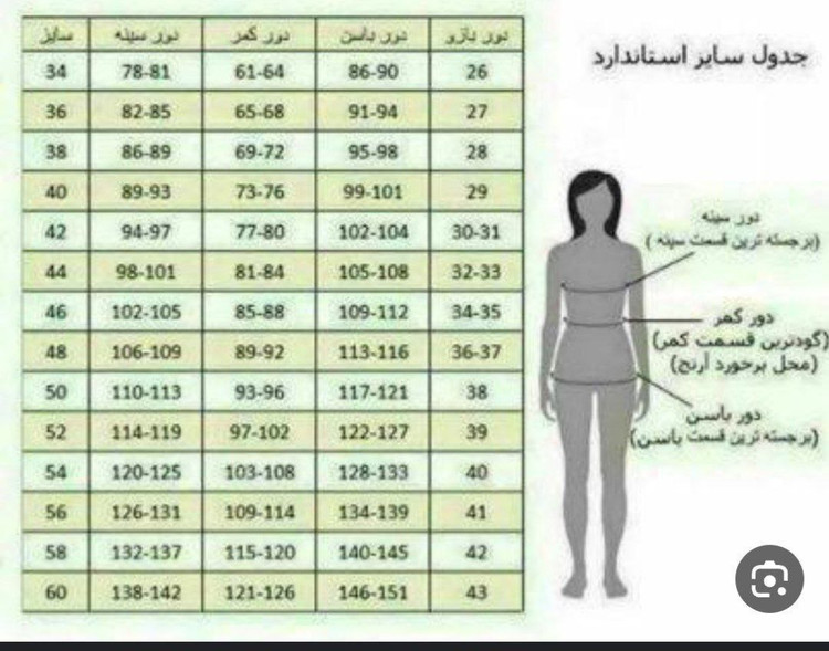 طبق جدول سایز دورسینه چک شود سایز ریز درنظر بگیرید❌