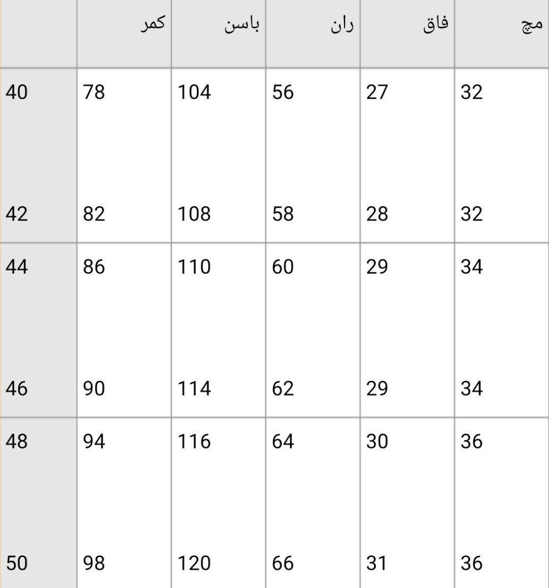 سایز ها : ، 38،40, 42, 44, 46, 48, 50