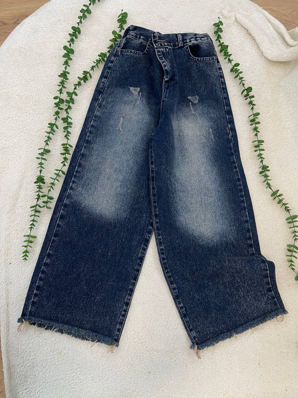 شلوار واید لگ ریشدار جنس جین سایزبندی38تا 48