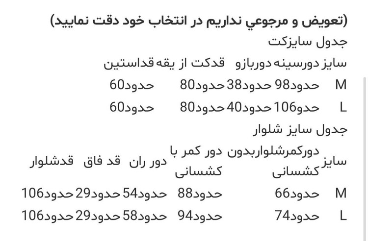 سایز ها : 1(38-42), 2(44-46)