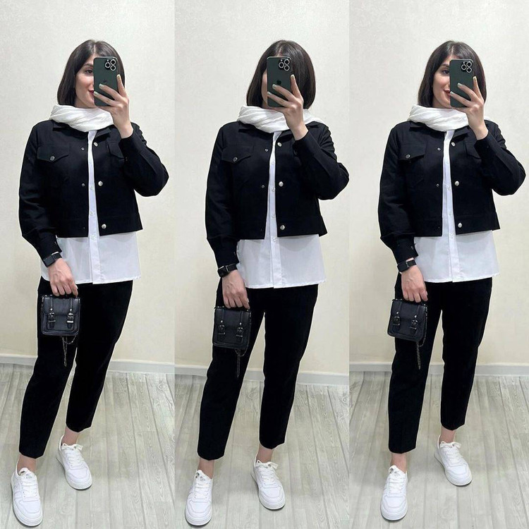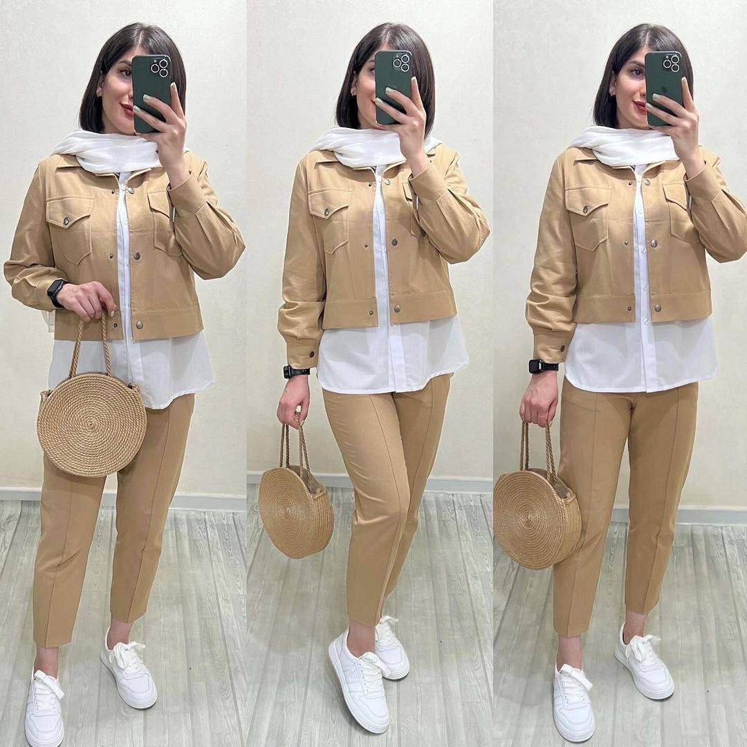 ست سه تیکه روژان جنس کتان کش و تترون فری سایز38 تا 46