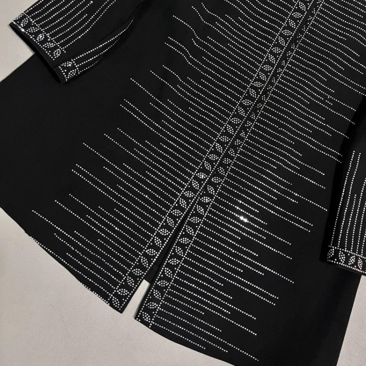 🆔#34203r 👚نام : کت نگین دار 👗🦋قد 80 🦋دورسینه سایز یک 98 🦋مناسب 38تا42 🦋دورسینه سایز دو 108 🦋مناسب 44تا46 🦋دورسینه سایز سه 112 🦋مناسب 46تا50الی52 🦋جلوی کار لای پرشین کار شده 🦋اصلا ریزش نگین ندارد کاملا پرس شده بدون ریزش 🖌 رنگ بندی : مشکی - 👪 سایز ها : 1 - 2 - 3 -