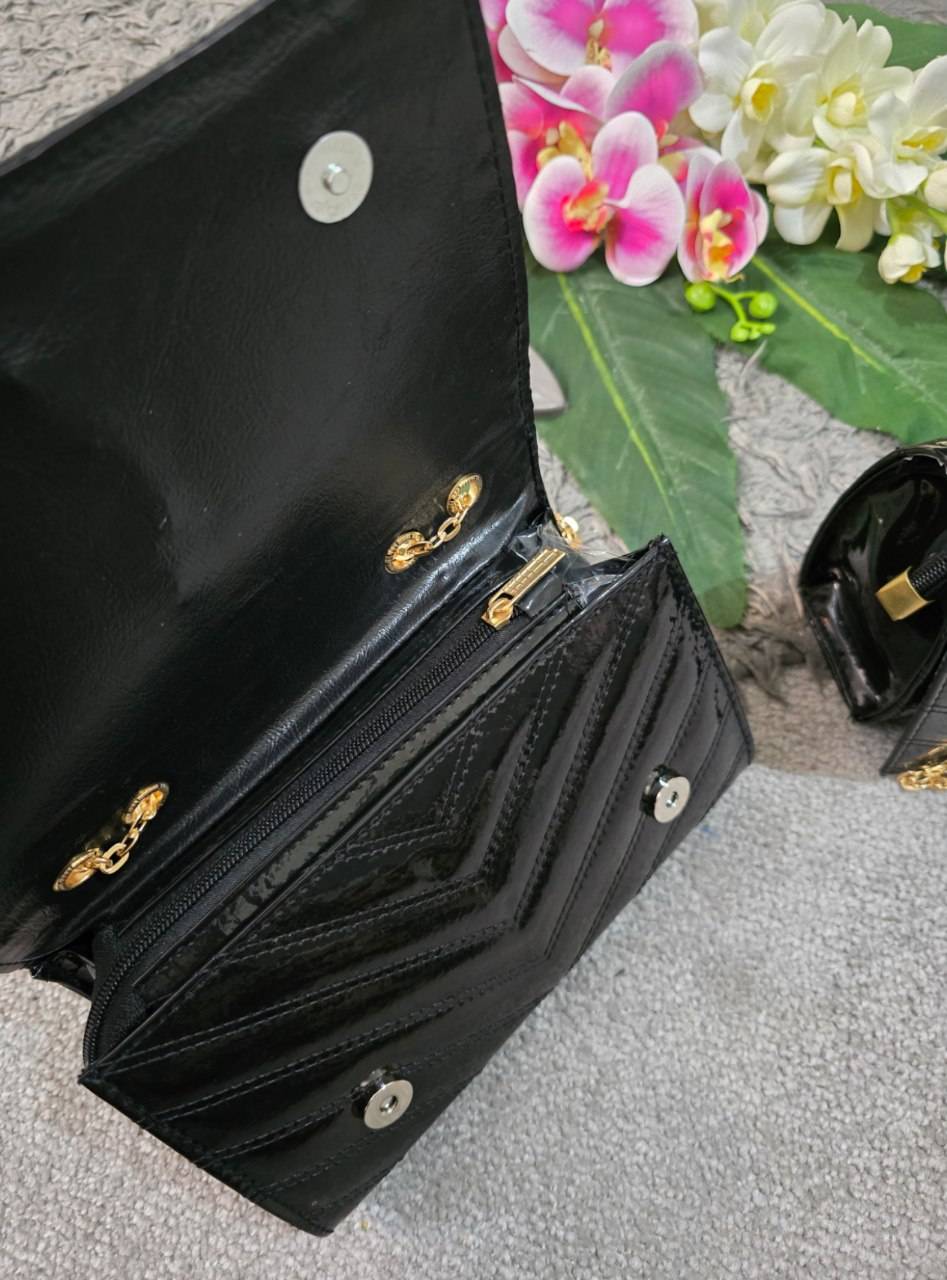 n #5666 نام : کیف مجلسی ورنی جنس : ورنی با کیفیت رنگ بندی : مشکی سایز ها : فری سایز سایز 20♥️*15 💥شیک و مجلسی 👌مناسب ست کردن با کارهای مجلسی و عیدانه