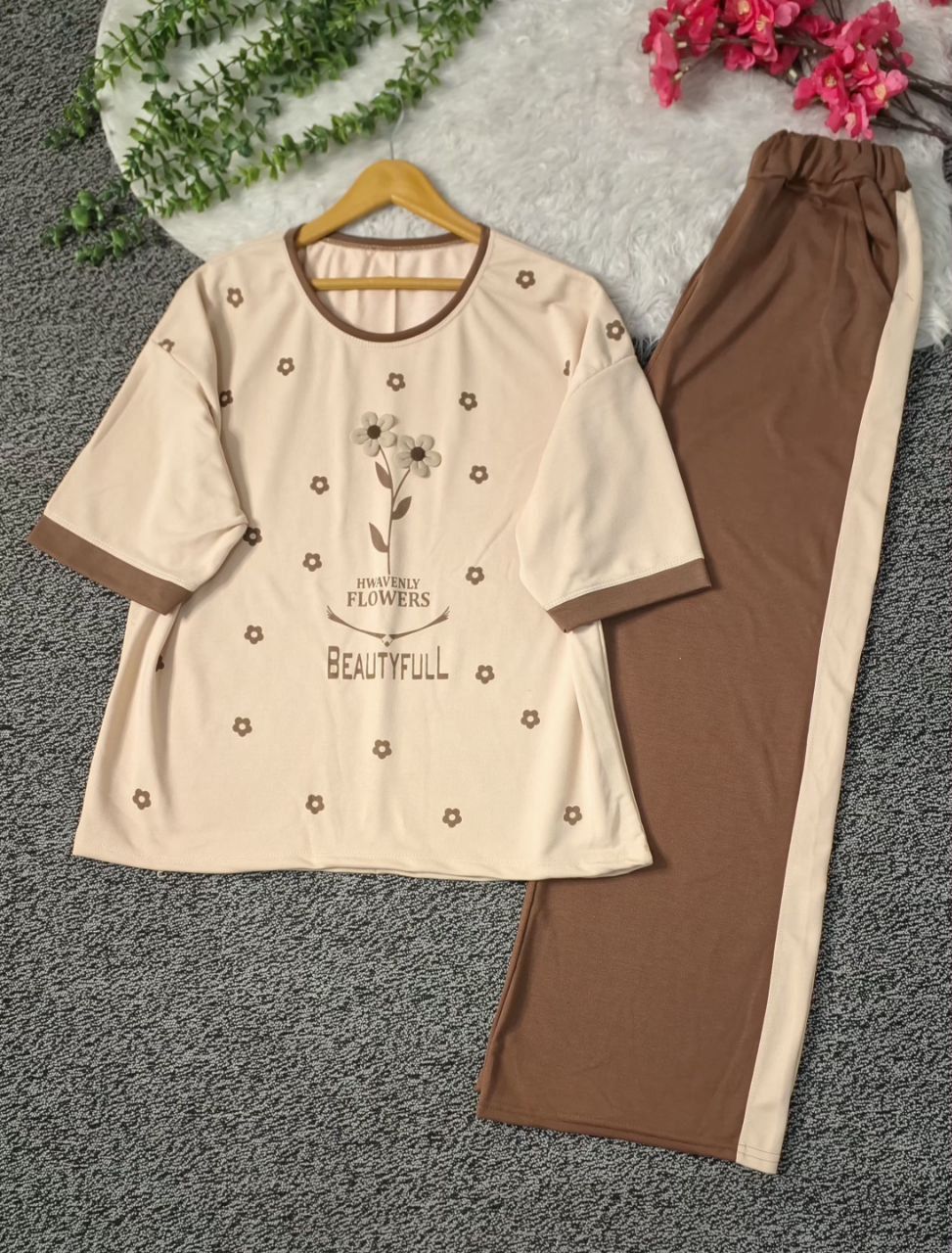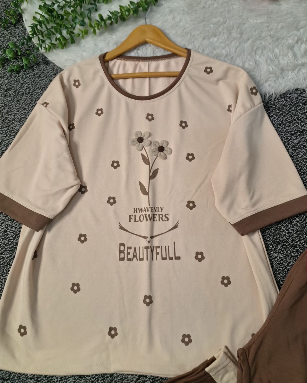 ست تیشرت و شلوار گل جنس نخ پنبه گلکسی فری سایز ۳۸تا ۴۸